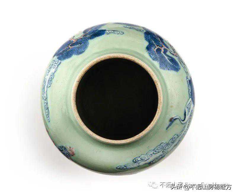 纽约苏富比拍賣2021年3月17日清康熙豆青地青花釉裏紅松下高士圖罐成交价13,860美元