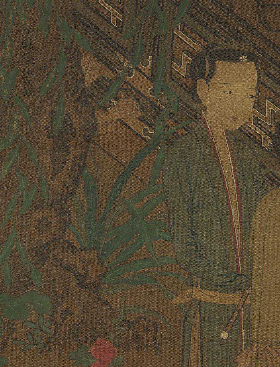 明唐寅《仿唐人仕女》轴(局部)台北故宫博物院藏