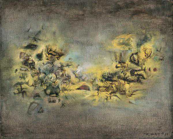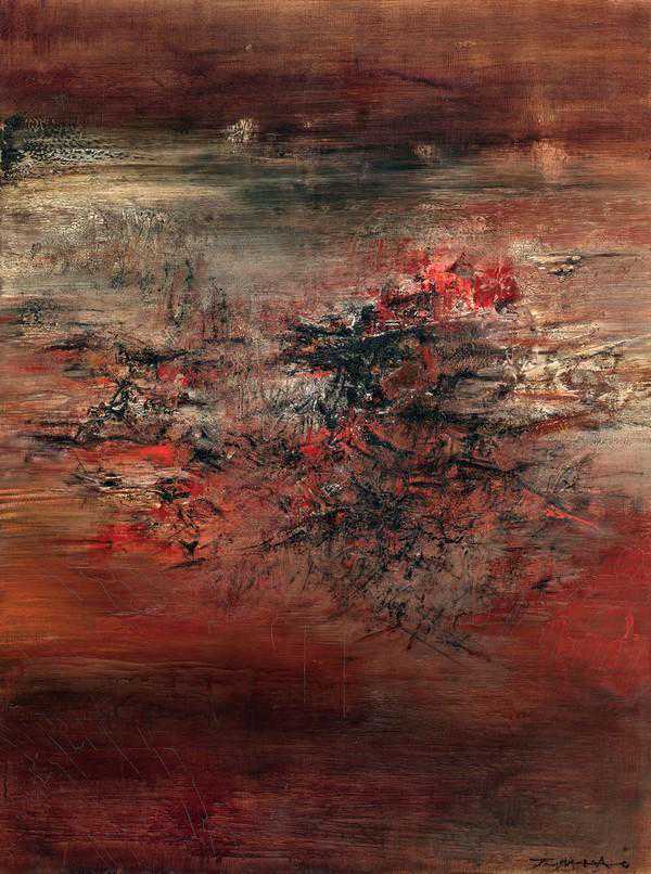 1957年,赵无极在美国旅行时,结识了纽曼、罗斯科等抽象派画家。抽象表现主义扩展了他的绘画视界。1958年起,他不再为作品命名,而是以作品完成的日期命名。