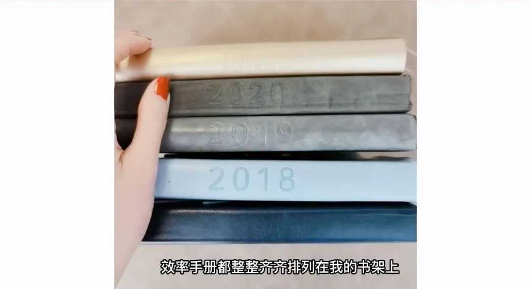 这个过程其实你每天都带,其实你跟它彼此绑定成一个更加紧密的关系更加紧密的战友,它慢慢去见证你的时间,你像我自己每一年的效率手册都整整齐齐排列在我的书架上,看起来就会非常的有成就感。