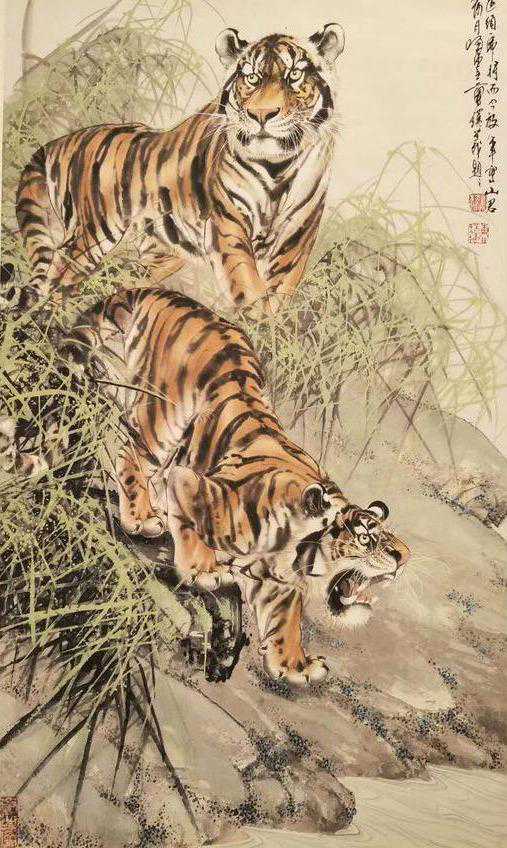 千百年来,虎的形象,虎的精神,一直是中国人喜爱和敬畏的思想载体,虎和龙一样,对国人来说,带有浓厚的图腾色彩。虎,是中国书画家比较偏爱、乐于表现的题材,从古至今来,画虎名家辈出。且不说唐有李渐,宋有辛成工、张道人,清有丘天民、席文卿,就是近代,还涌现出以刘奎龄、高剑父、高奇峰等人为代表的画虎大家。因故,若想在虎画方面取得不俗成绩,实在很难。