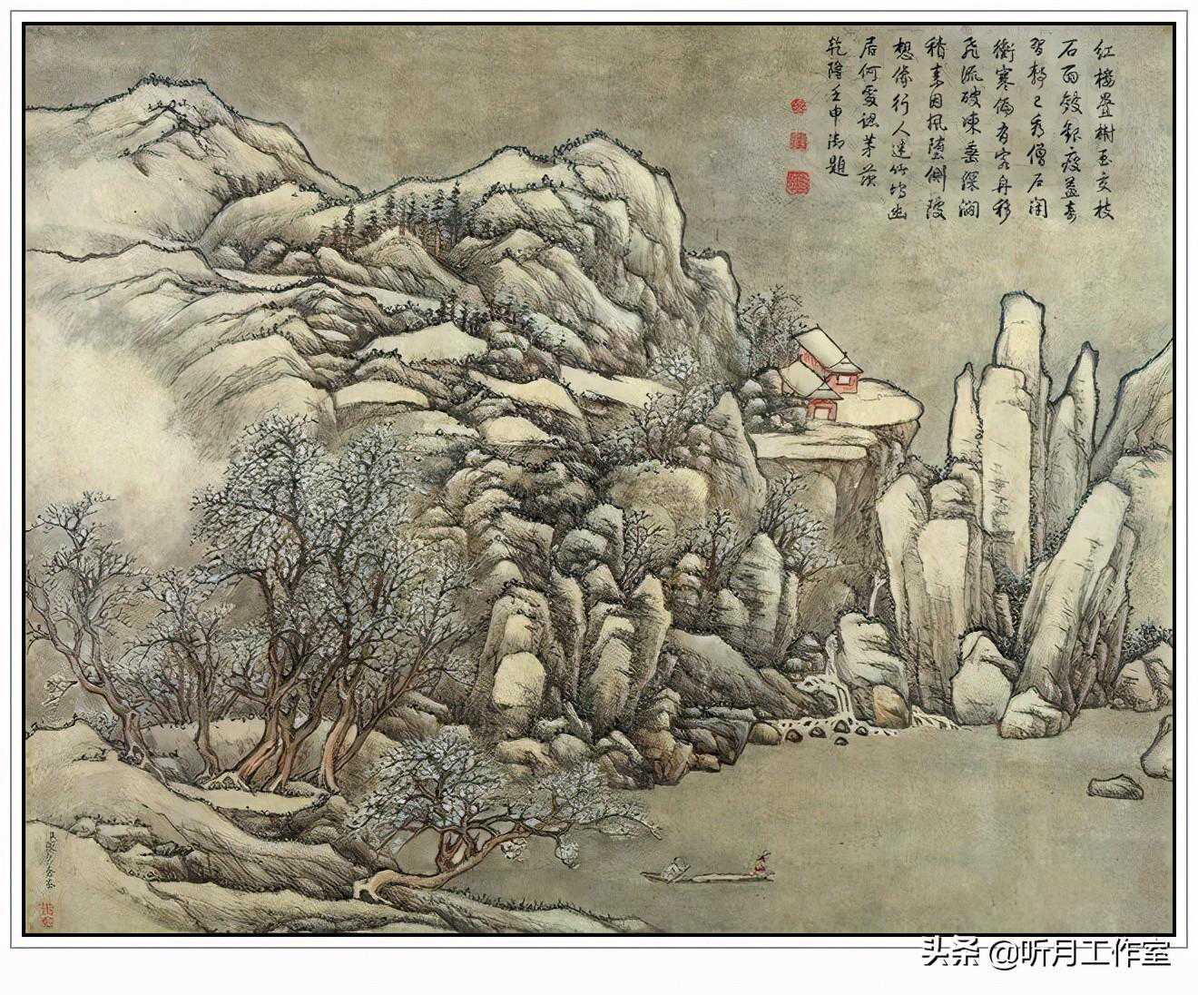 一幅雪景图,有清冷面貌,同时也蕴含春的气息,这样的作品看上去会触动很多感慨。想必当年乾隆皇帝也是感受到画中的气韵,才有了动笔题诗的冲动。