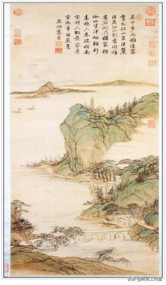 清张宗苍《石湖霁景》116.9×46.4厘米台北故宫博物院藏。