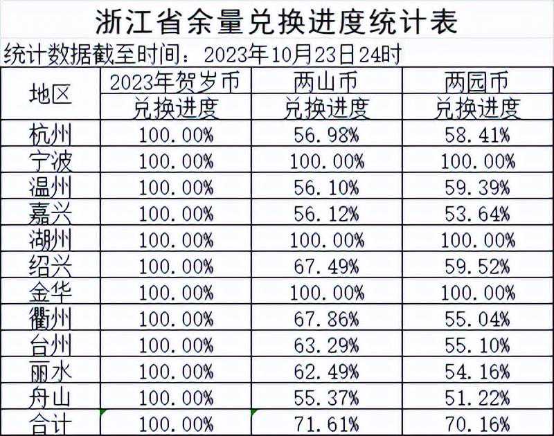 可以看到,略有溢价的兔币,兑换进度已经全面达成百分百!但两山币和两园币,还有大部分地区的兑换进度不如人意。