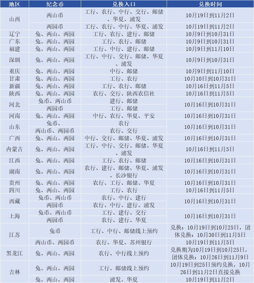 大家需要看准时间,部分地区会在10月31日就结束兑换了!
