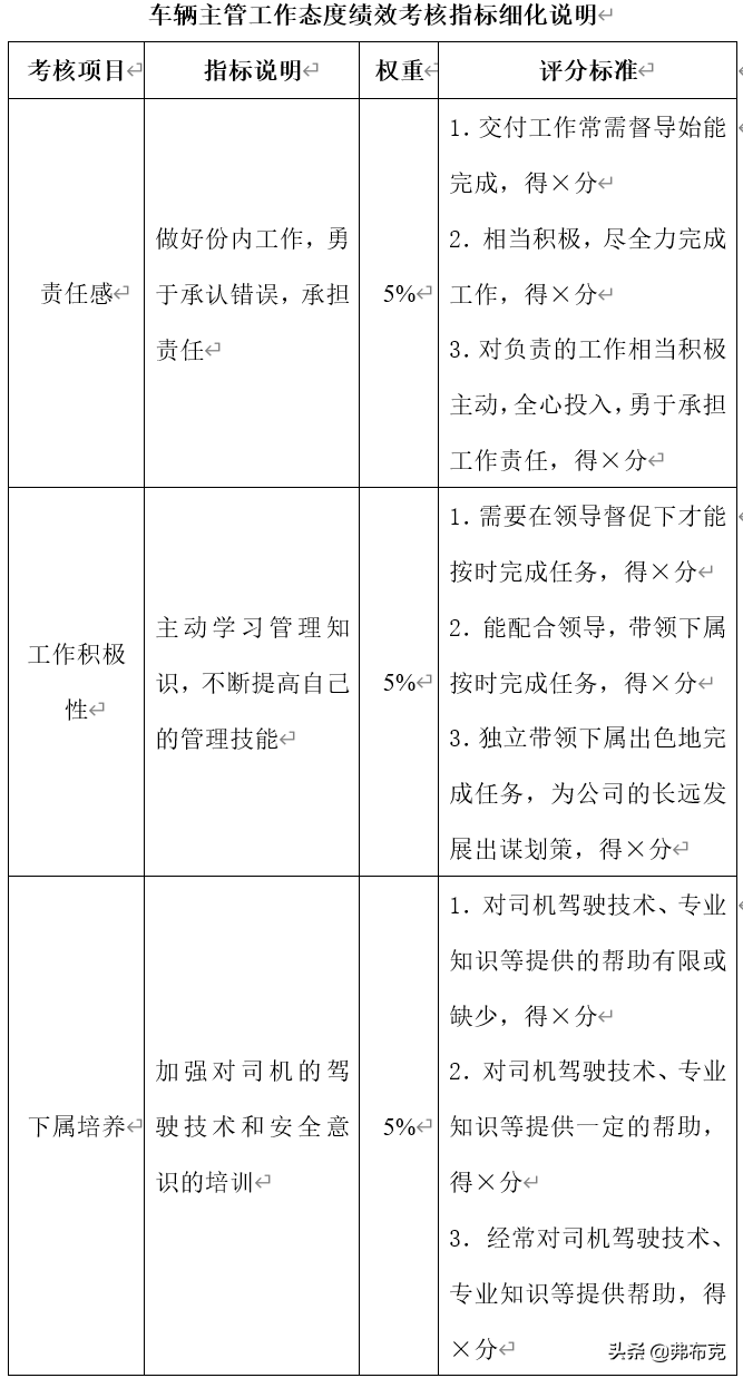 对于车辆主管的考核周期,实行月度考核和年度考核相结合的考核方式。