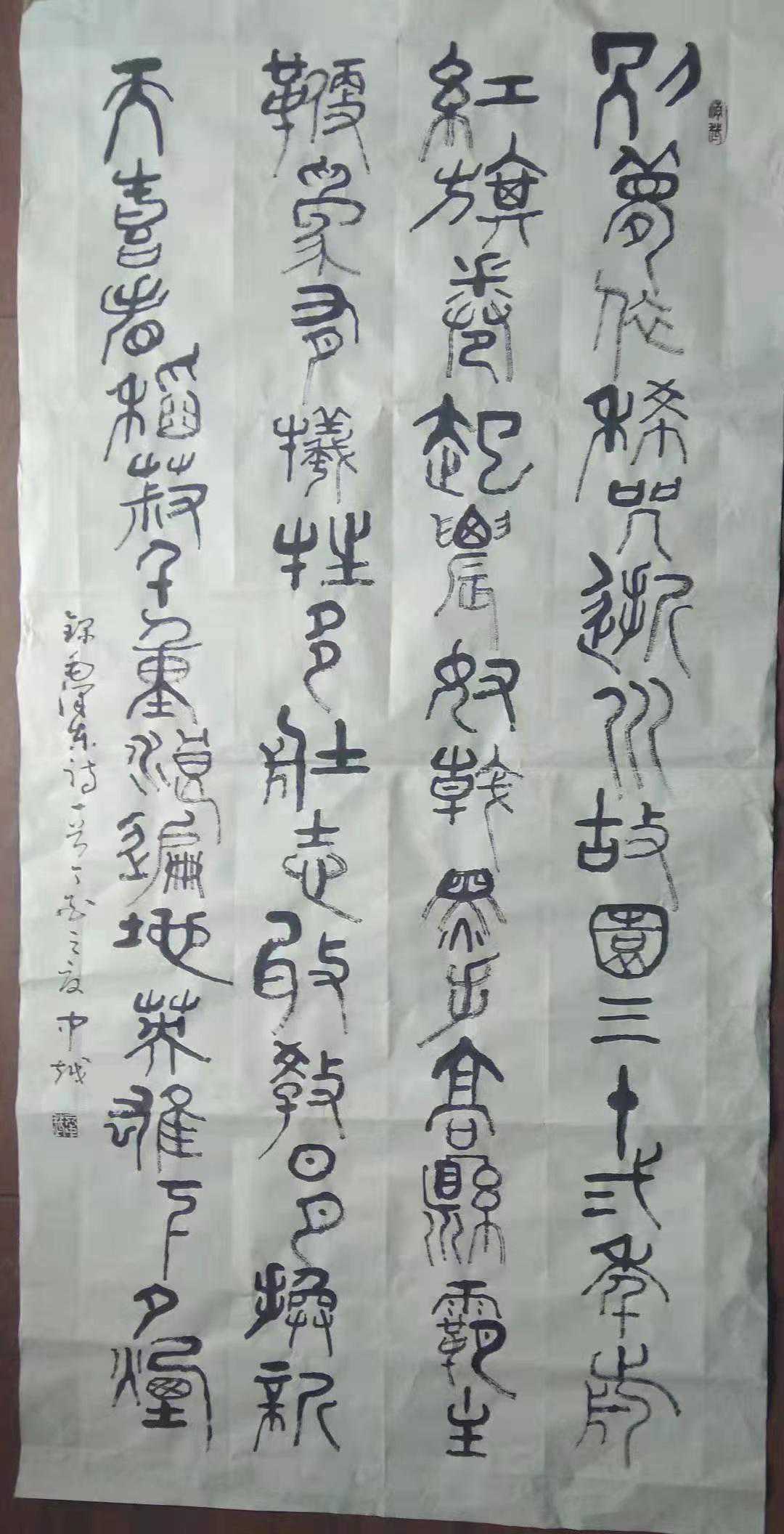 亓中越,1962年生山东济南人,自幼酷爱书法艺术,临习多家名帖,早年师从孟继学、吴茂田等名家,后求教于顾柯红等。楷学颜真卿、储遂良等,行学兰亭叙等,草学标准草书、十七帖、书谱、张旭等,隶学礼器等多家,篆学钟鼎石鼓及古今名家。济南市非物质文化遗产亓家木刻代表性传承人。
