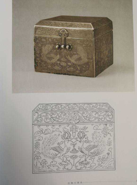 2、纹饰用细线勾勒,在纹饰外以细密线条勾勒花卉纹。