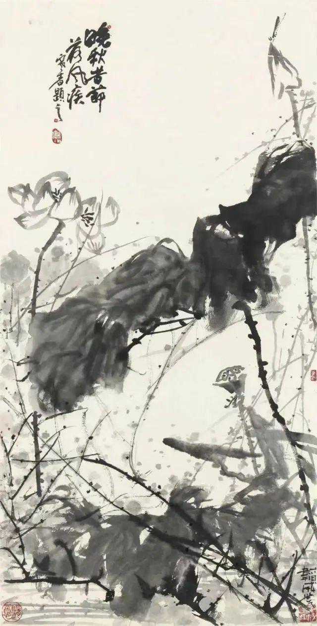 孙韬成《晚秋时节荷风疾》137×70cm