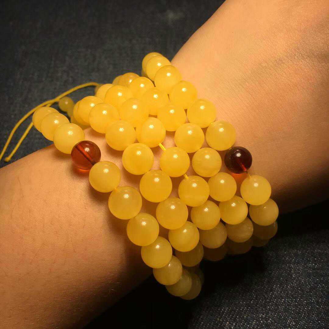 蜜蜡深埋地下多年,它那熨帖的手感和迷人的色泽备受文玩爱好者喜爱,而且它是采用天然原石原色打磨而成,纯手工制作,不经过其它优化工艺,看起来就灵气十足,佩戴起来可绕手4-5圈。