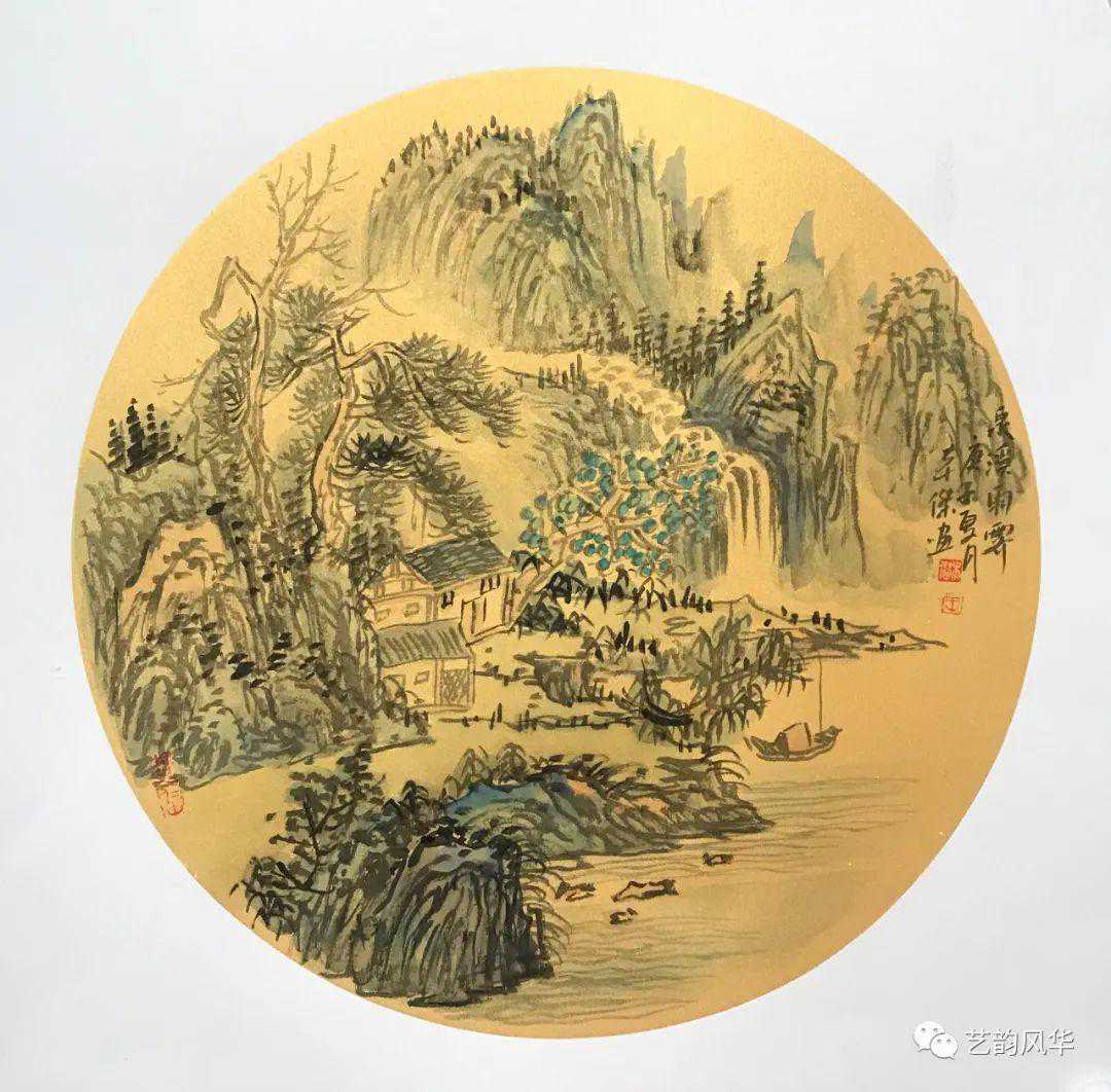传统山水讲究形象,深追意象,由形到韵都是王本杰先生山水艺术双面镀金的造诣。山水的构图也是文化与哲学修养的坐标。王本杰先生的山水构图把三远之法布置的非常到位,从中心到四边皆是空间经营的神思妙智。平远开阔,视野无碍,一河两岸,秋风待度。高远合深远,上突危峰,下览深谷,云上山巅,四面俊厚。西峰峥嵘喷流泉,东崖复沓弊轻雾,深林杂树,萧寺掩映,这些景致的综合,总是云来山更佳,云去山如画的唯美构造。美在气韵,生动谓上品!