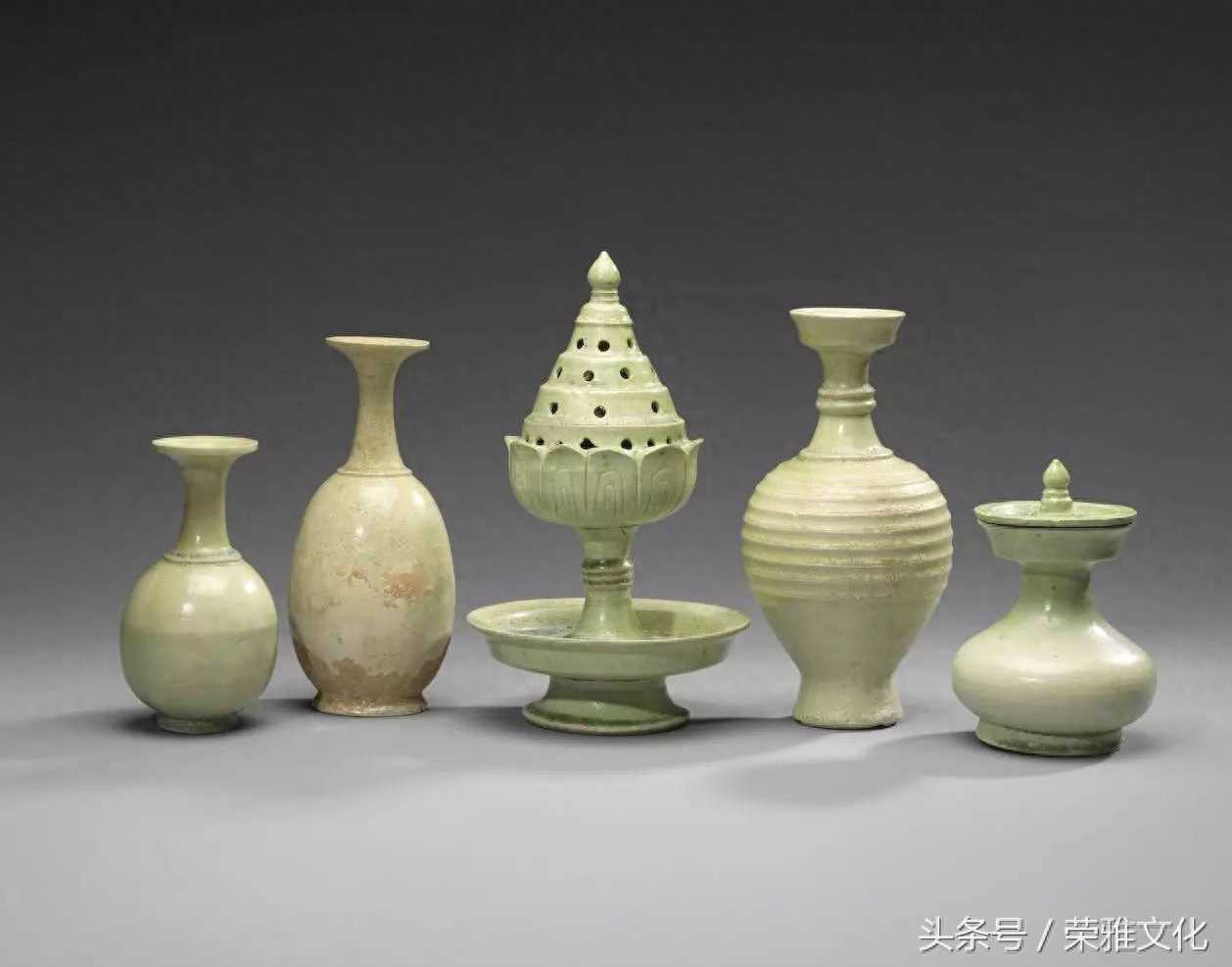 北齐绿釉礼器一套。14年秋天,香港邦瀚斯举办了一场名为《古雅致臻—奉文堂藏中國古代陶瓷》的专场拍卖。一百余件顶尖陶瓷艺术品,以拍卖这种形式,展现在公众面前。北齐青釉贴花莲瓣蒜头瓶。中国高古瓷窑口众多,......