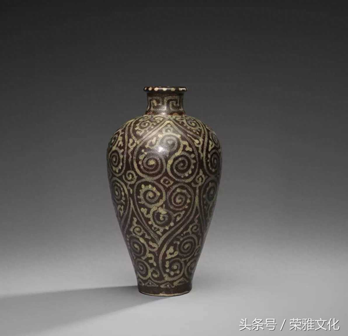 南宋吉州窑仿剔犀如意云纹梅瓶。