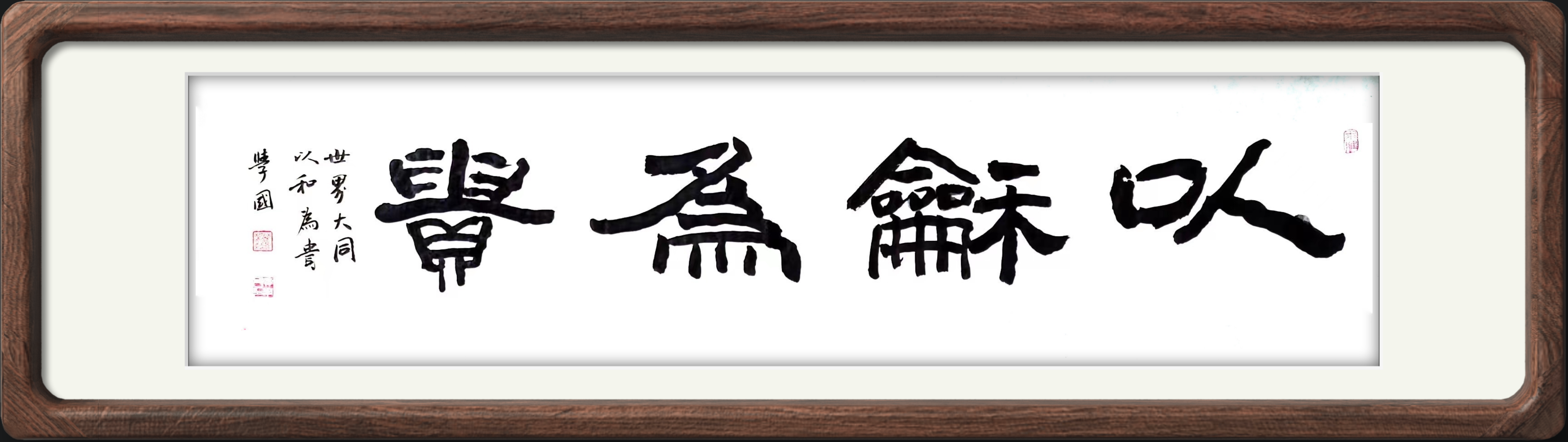 贾学国书法作品以七分骨三分肉为特质,楷行草隶篆五体兼备,各有特色,独具神采。雄浑、古朴、厚重、多变,凝神贯气,书印一体,诗联书胸襟,笔墨展才情。曾三次参加中国教育电视台书画春晚节目,接受中国教育电视台记者专访。
