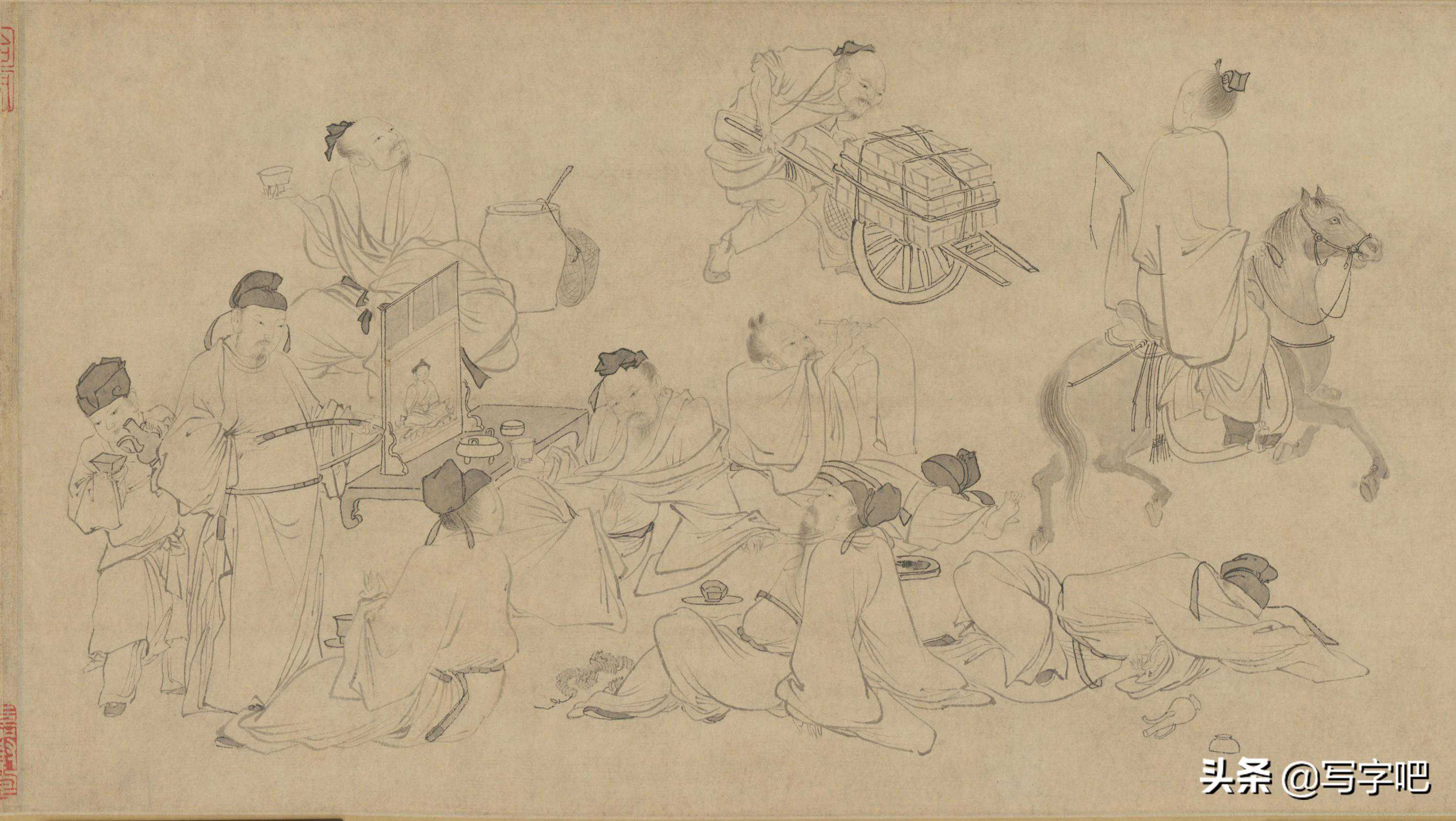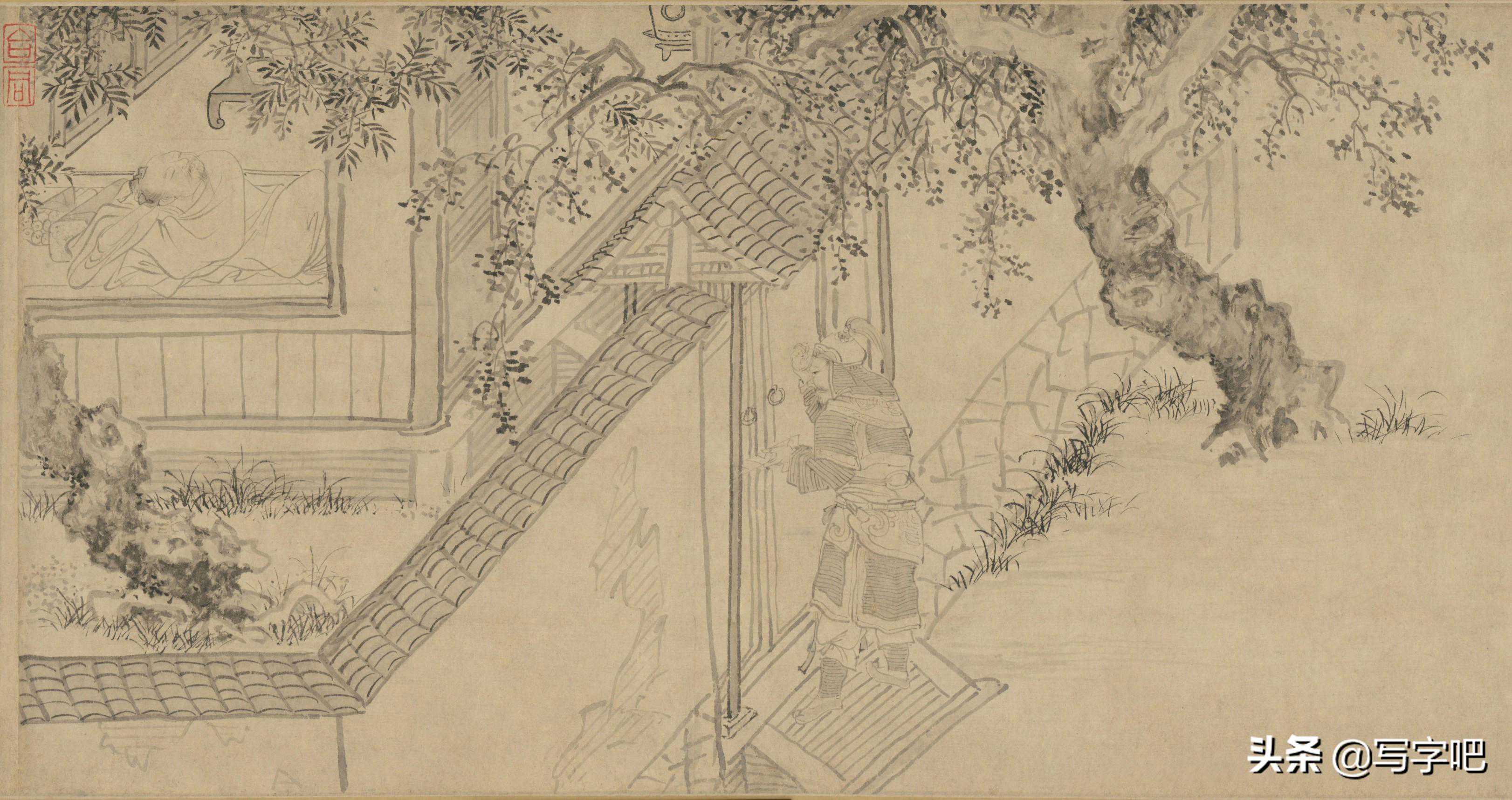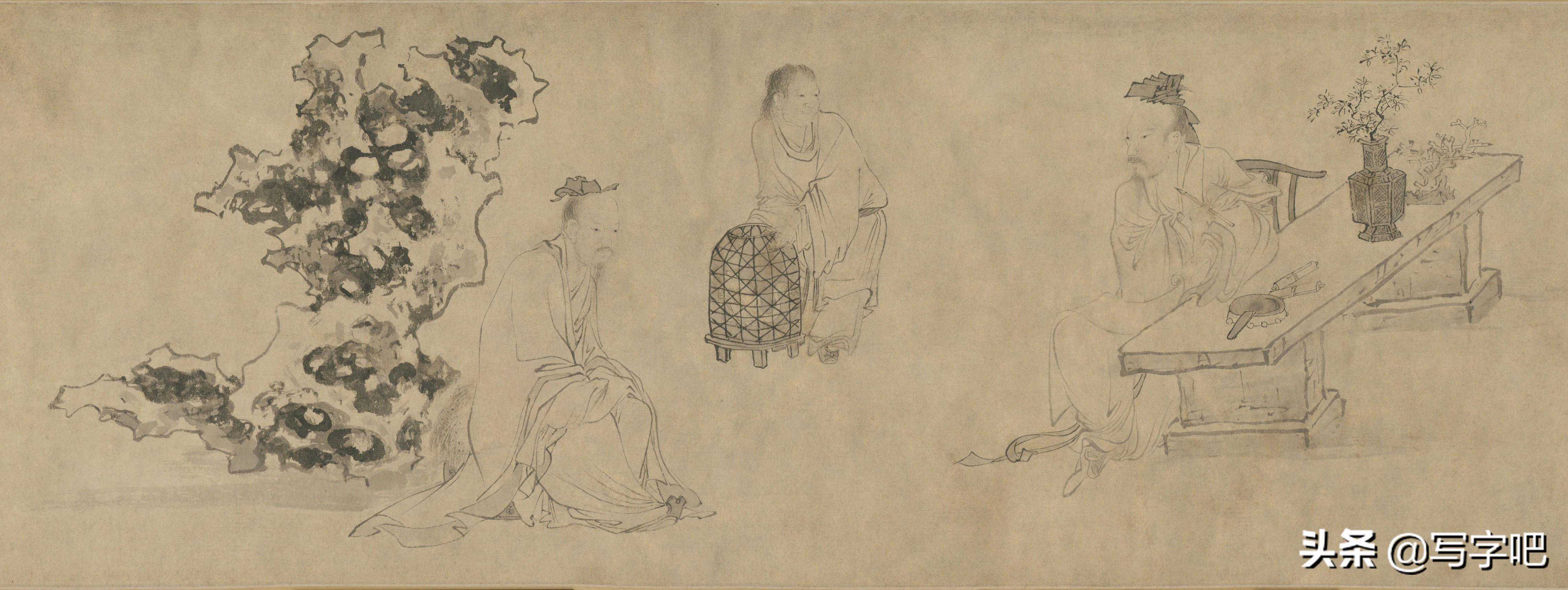 图中的人物,杜堇用擅长的“白描法”,笔法峭劲,生动有神,构图简洁,用墨比宋人简淡,但淡而不薄。