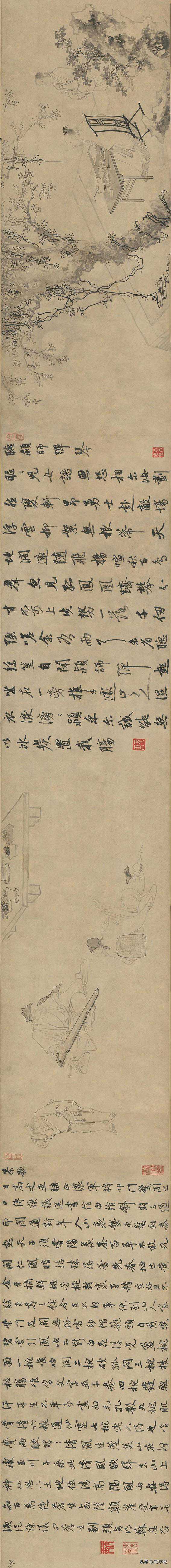 明代有金琮和杜堇,一位颇受文徵明推崇,一位影响了唐伯虎的画风。金琮,书法初法赵孟頫,晚学张雨。作赵孟頫的书画能达到乱真的程度。金琮书法沉稳的风格颇受文徵明的推崇。杜堇,以人物画著称,是当时画坛的白描高......