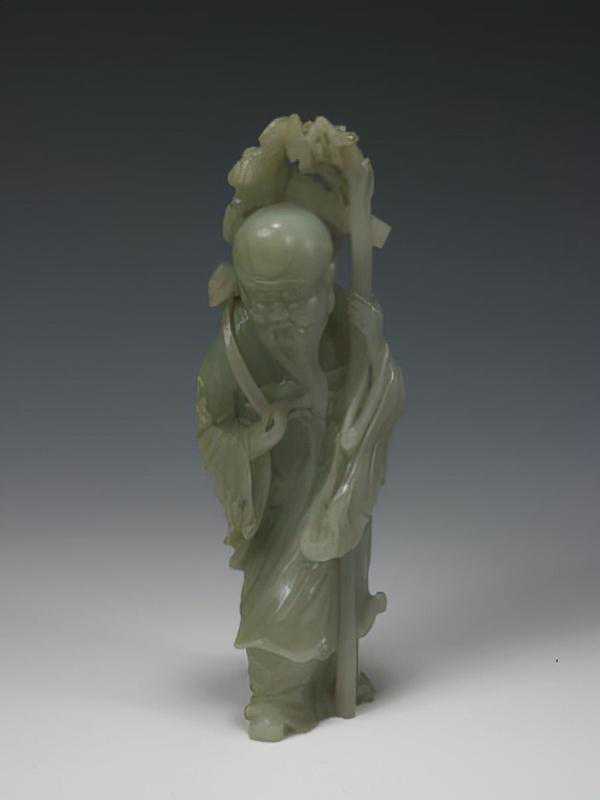 青玉寿星老人,清,高19.3cm,宽6.5cm,厚5.4cm。