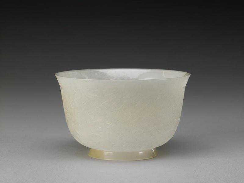 此碗玉质莹润,造型规整,琢刻精细。