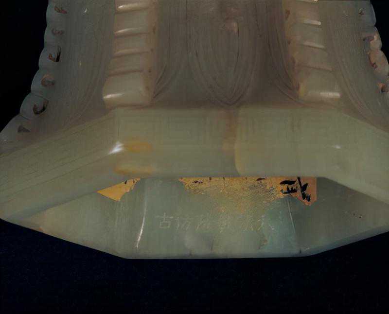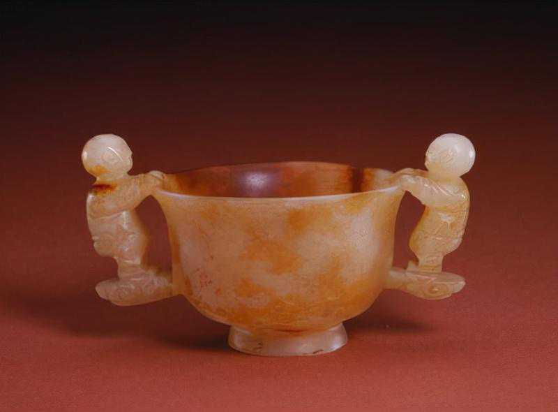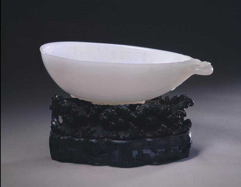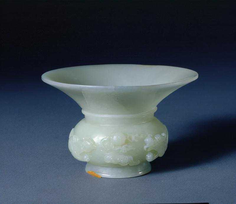 这是曾支持阿睦尔撒纳叛清的小和卓霍集占在支持阿睦尔撒纳叛乱失败后,遣使贡进的第一件痕都斯坦玉器。这也就是清代具有阿拉伯艺术风格的玉器首次进入内廷。平息回部大小和卓木的叛乱,扫清了和阗玉进入中原的障碍,大量新疆玉开始进入宫廷,这为皇家玉器工艺的发展提供了材料基础。乾隆帝喜欢痕玉玉器,在宫内设置有专门的痕玉作坊。