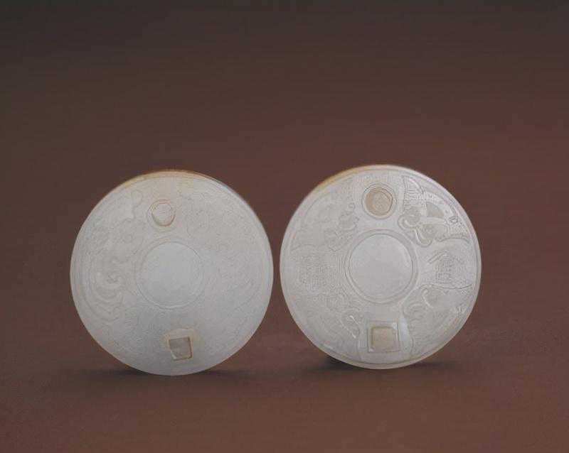 白玉合符,清,直径6.3cm,厚(合)1cm。