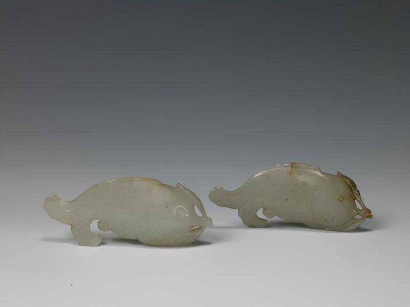 成组玉鱼,清,花径5.3cm,鱼长7.8cm,宽3cm。