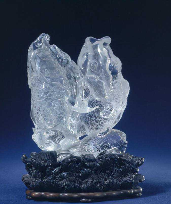 水晶双鱼花插,清,高14.8cm,最宽11cm。