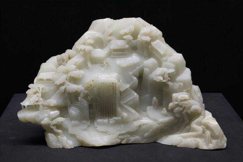 玉器表面琢碾带有叙事性和图画性装饰图案的做法,始于宋代。明代玉图画更为盛行,多将山水、人物、花鸟、典故、诗文意境移植到玉质器皿的表面作通景式的表达,但这种表现多是平面的。玉山子作为室内陈设之一,在清代十分流行,既有硕大无朋重达万斤的大禹治水图山子,也有精巧雅致可收纳于百事件中者,大小适中的案头陈设山子更是不胜枚举。玉山子多取材绘画、诗文、历史故事,精心布局,立体展示,有的更镌刻诗文、印章,成为集诗、书、画、印于一体的极富文人雅趣的三维雕刻艺术。