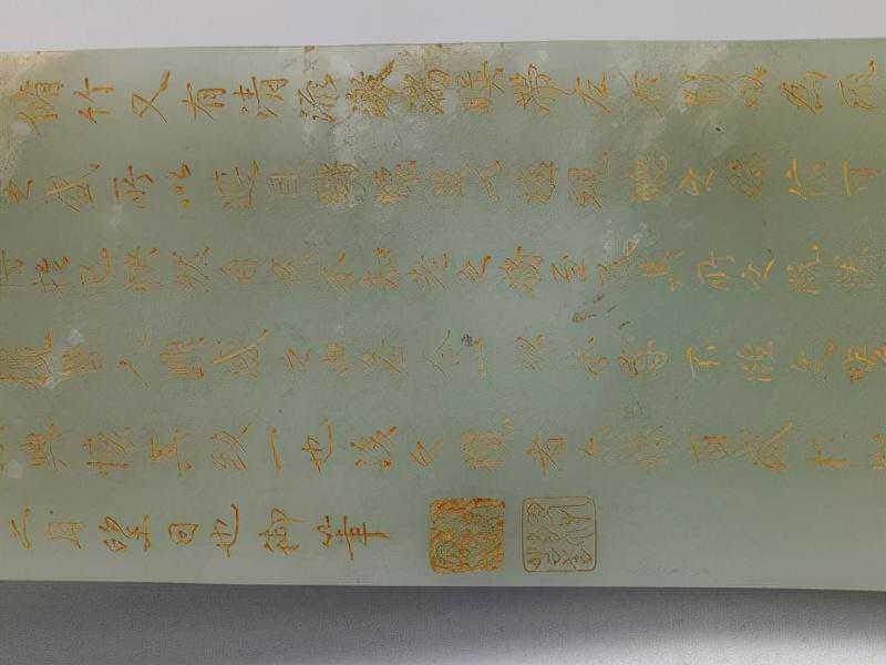 兰亭序青玉插屏,清,高9cm,宽6.7cm,厚0.6cm。