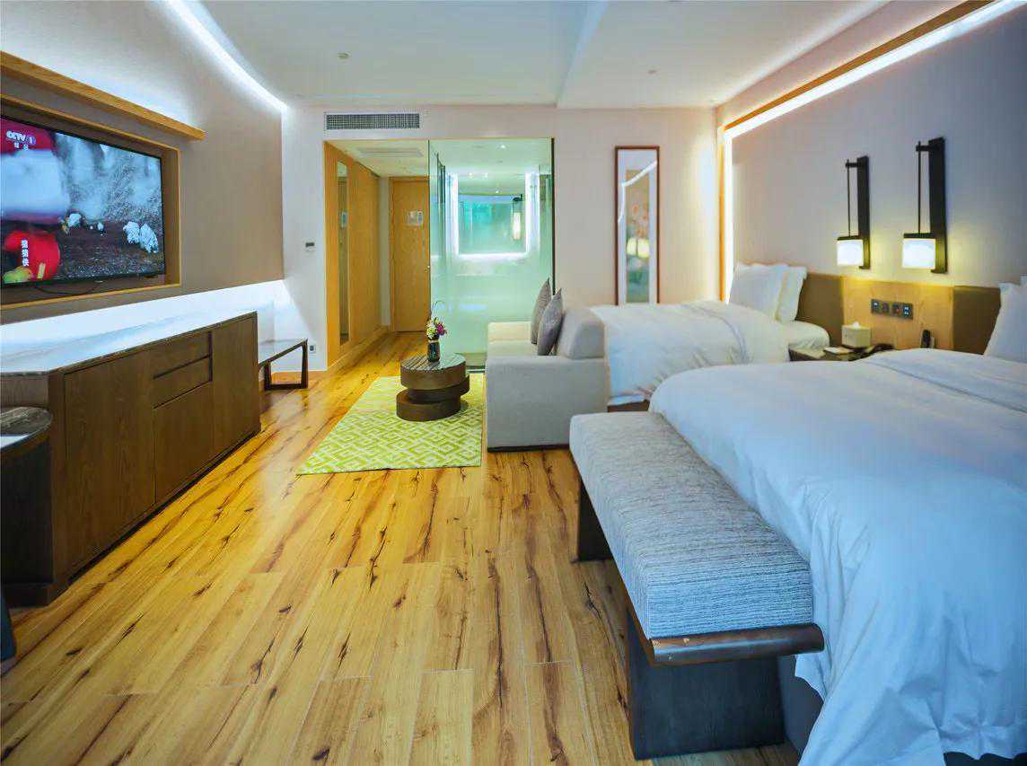 晚上入住安吉涵田度假村双人750套餐包含(一晚半山温泉大床房+2份自助早餐+精美点心+双人温泉+宋茗白茶两包)
