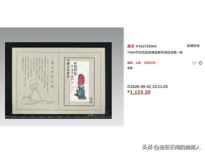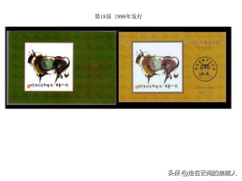 这一年并没有特别发行纪念张,而是在《齐白石作品选(小型张)》上加盖红色菱形纪念戳,齐白石小型张本身也是不可多得的精品,这枚成为佳邮评选纪念的张雏形的龙头票。