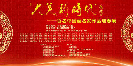 展览名称:大美新时代---百名中国画名家作品迎春展展览地点:北京民族文化宫展览时间:2018年1月19--22日展览开幕式时间:2018年1月20日上午10时主办单位:河北省美术家协会山西省美术家协会......