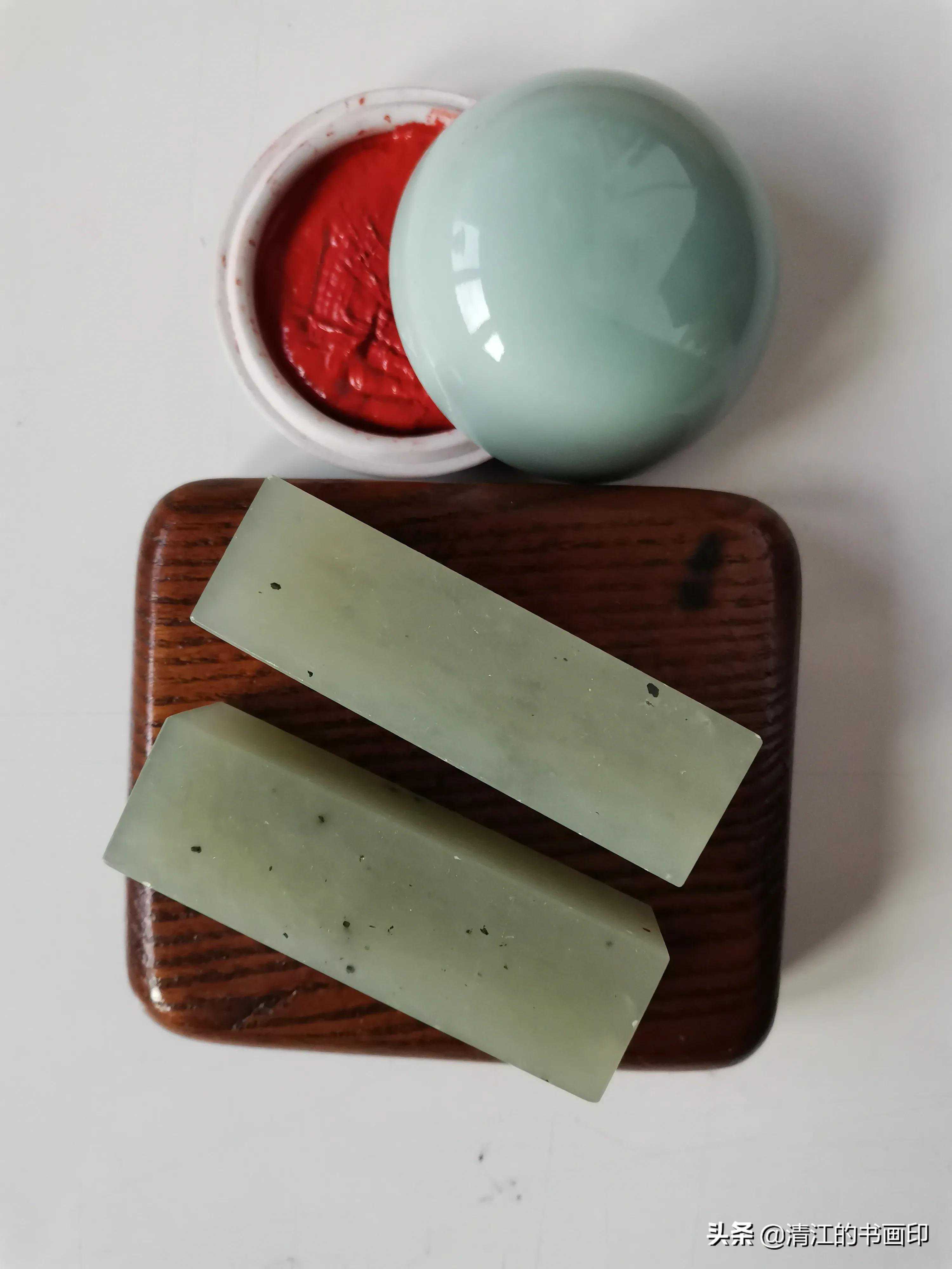 几年的进修结束了,我要返回工作单位了,去和肖志勇先生道别。他从柜台里拿出一对冻石章,郑重地交给我,说这对冻章是巴林绿冻石,是清朝光绪年间在内蒙巴林右旗刚发现巴林石矿脉时开采出来的。这种绿冻石矿脉稀少,制成印章存世量少,这是他家的老货,今天把这两枚对章送给我做个纪念吧。