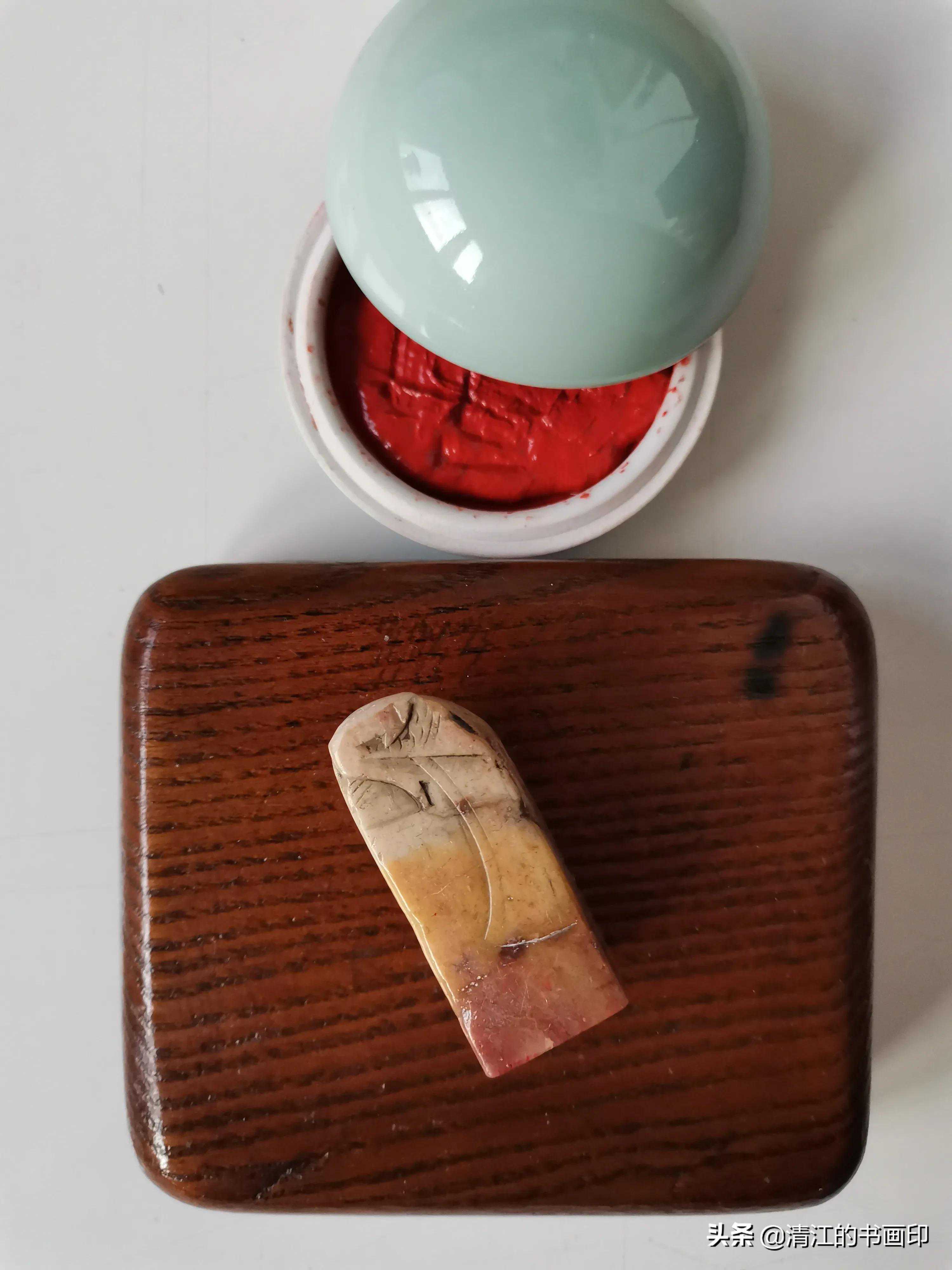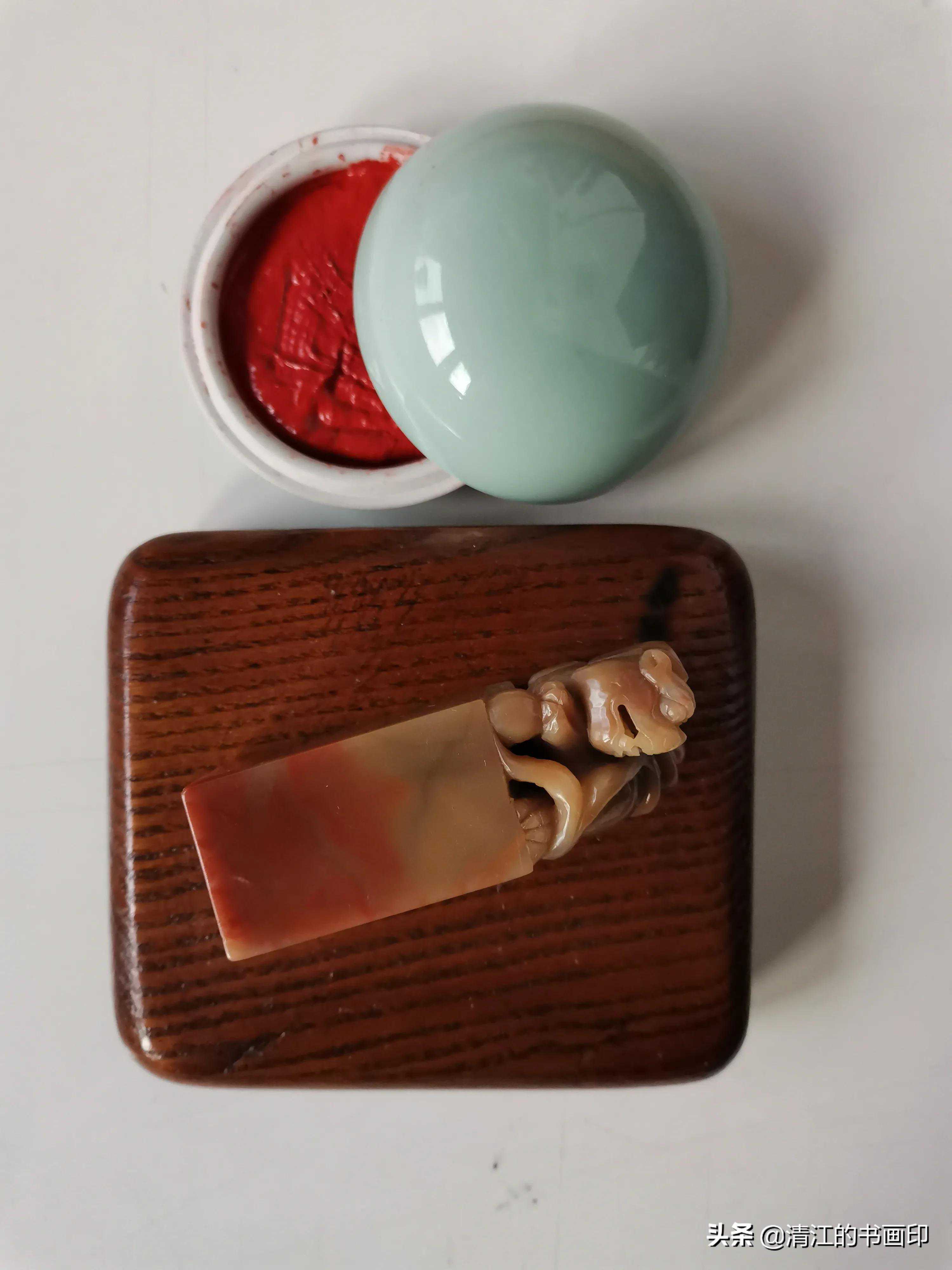 再来说说老印章,妻子的姥姥和姥爷在旧中国时期都是文化人,她的姥爷是黑龙江齐齐哈尔"师道"(齐齐哈尔老师范)毕业的,毛笔字写的非常好,经常临帖,写出来的字没有江湖气。常写毛笔字就少不了印章,据老人讲,他的印章都是寿山石老坑老料,都是花银圆买的,也有友人送的,传到妻子手中有四枚印章。今天照下一枚,是寿山洞坑"杜陵石",老人说"杜陵石"是寿山石中的上品、稀品。