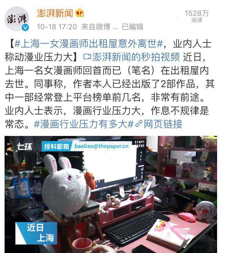 年仅26岁的漫画家“回首而已”,猝死在上海的出租屋内。