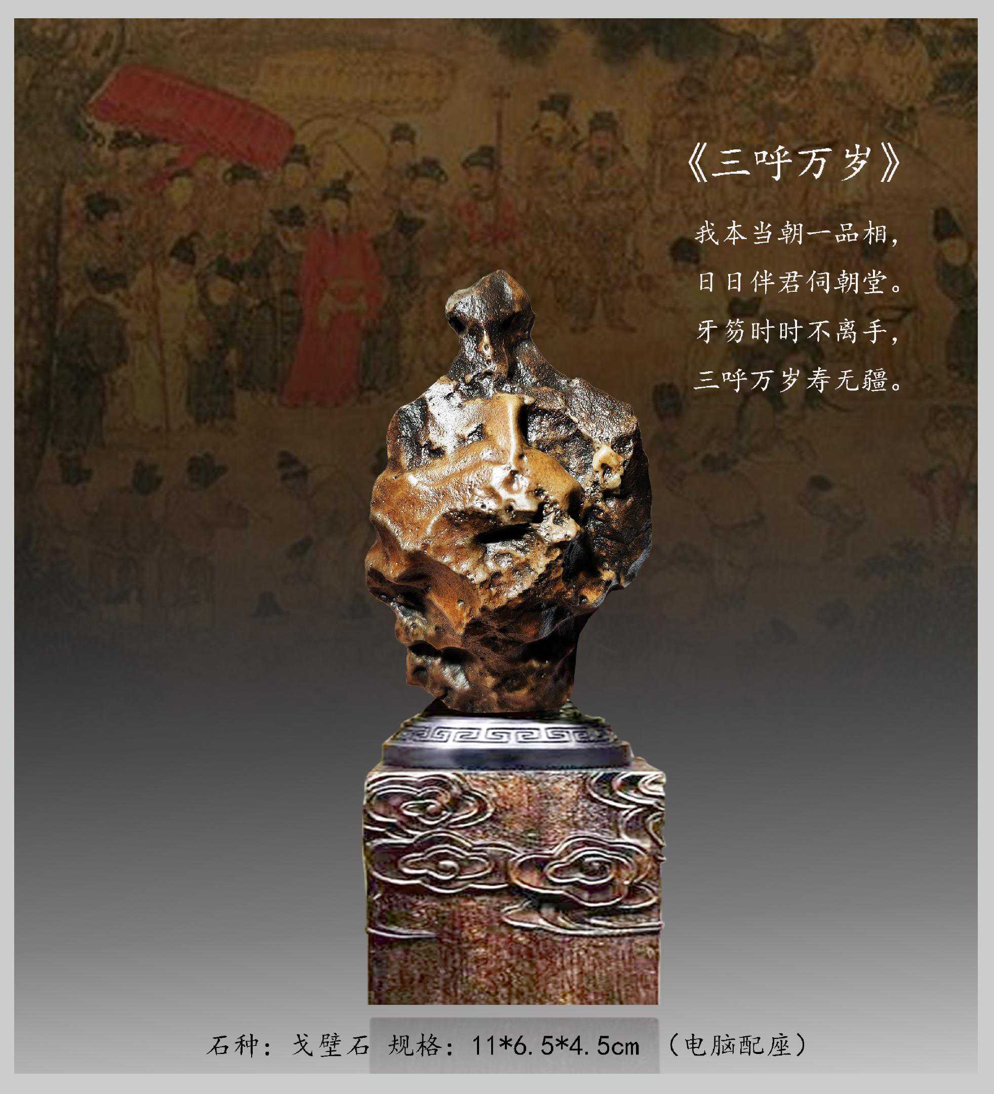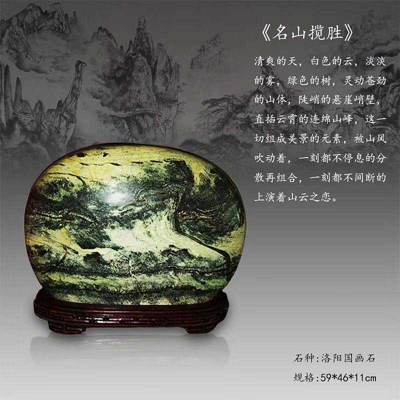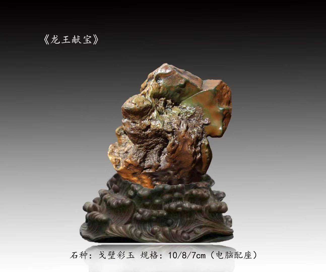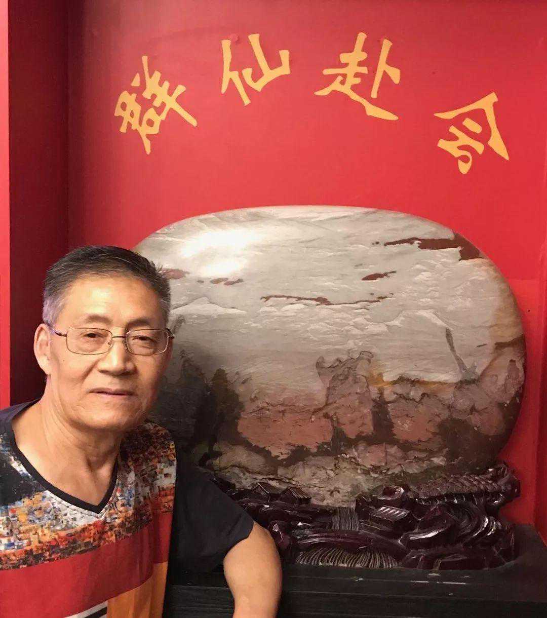 20年前,老刘又与奇石结缘,成为中石协创会时的初始会员,老刘收藏石头不计较石种,只要美,只要观赏主题自然天成、稀缺,形成难度大,能读出文化,品出故事,价高点也行,只要拿得动一定拿下,如果买不到手就会吃不香,睡不着。一次在洛阳石展上看到一方清江石,价高缺银子,就同卖方朋友协商,可否暂欠一部分,卖方欣然同意。石头拉回老家后,老刘立马带上早年收藏的纪念金币,急奔北京马甸市场转让还款。第二年还是在洛阳石展上,他又看上了一方大块清江画面石,后命名《群仙赴会》,因色彩、纹路都非常奇绝,寓意也好,可遇而不可求,但还是缺钱,没办法,老刘只好在石展上直接往美国打电话,让在美国斯坦福大学读研的儿子把他在学校贷的学费打10万过来,儿子说不买不行吗?老刘说全世界就此一方,我想买,错过了就再难遇上,钱以后可以再赚,同样的石头再找不来。儿子很孝顺立马给打了5万过来,老刘终于得偿所愿,满载而归。但后来老刘还是有点难受:为了自己的爱好不顾孩子的学习,我是不是有点太自私了。