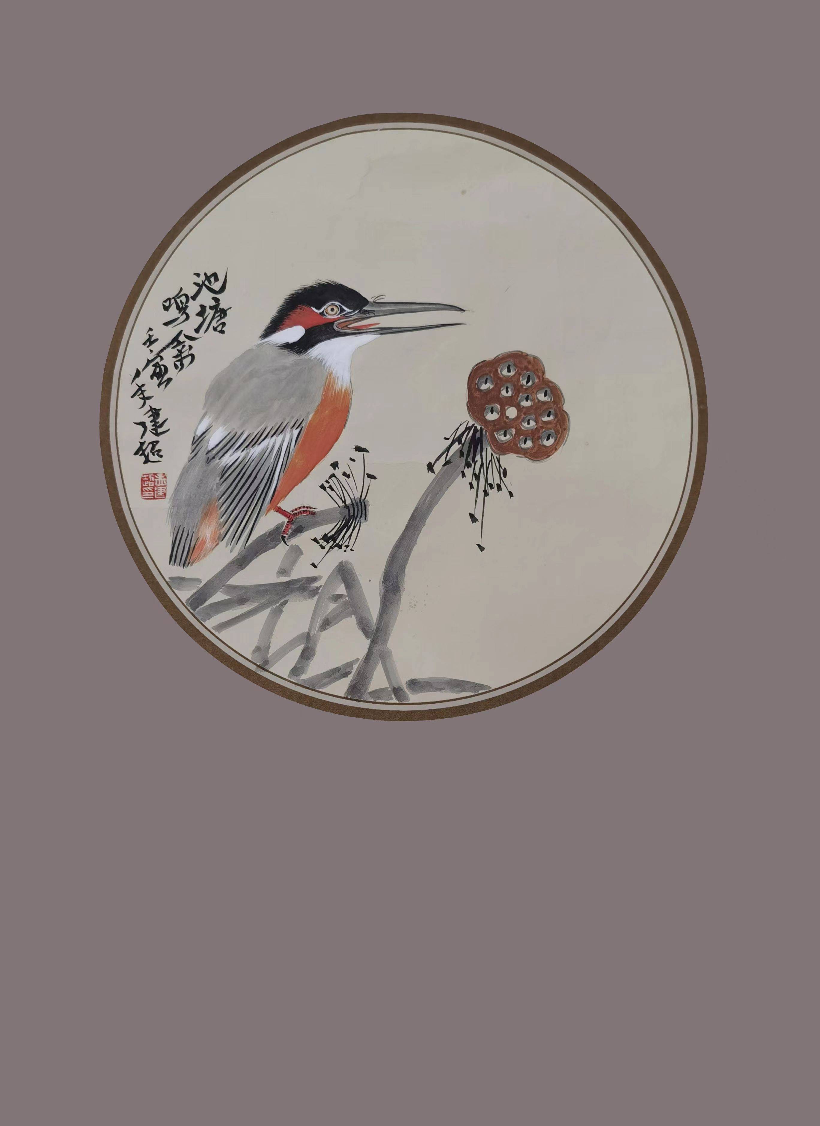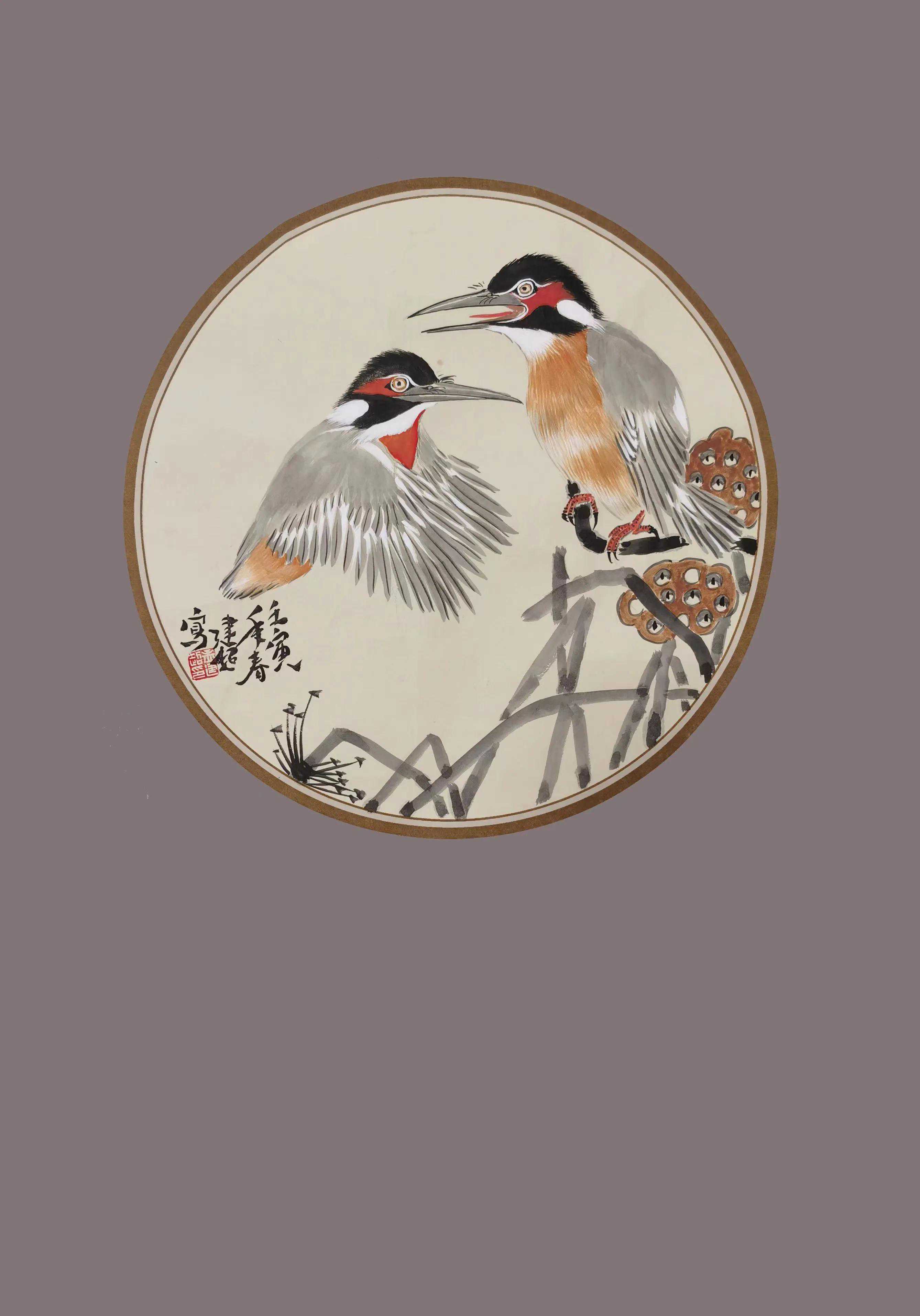 国画讲究意境,不同之扇面形制与绘画风格,皆能使扇面作品产生不同之意境美。画家孟建超深谐团扇花鸟画之章法布局、色彩搭配、意境烘托之道,善于表达以小见大之美学思想。其团扇花鸟画形神兼容、虚静空灵,静以观之、舒意畅神,咫尺之内、意境悠远。