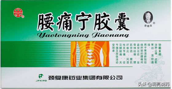 腰痛宁胶囊,具有消肿止痛,疏散寒邪,温经通络的功效。由马钱子粉(调制)、土鳖虫、川牛膝、甘草、麻黄、乳香(醋制)、没药(醋制)、全蝎、僵蚕(麸炒)、麸炒苍术组成。具有消肿止痛,疏散寒邪,温经通络的功效。用于寒湿瘀阻经络所致的腰椎间盘突出症,坐骨神经痛,腰肌劳损,腰肌纤维炎,风湿性关节痛。症见腰腿痛,关节痛及肢体活动受限者。