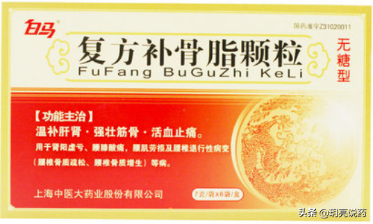 复方补骨脂颗粒,具有温补肝肾,强壮筋骨,活血止痛的功效。由补骨脂、锁阳、续断、狗脊、赤芍、黄精组成。用于肾阳阴亏,腰膝酸痛,腰肌劳损及腰椎退行性病变等病。