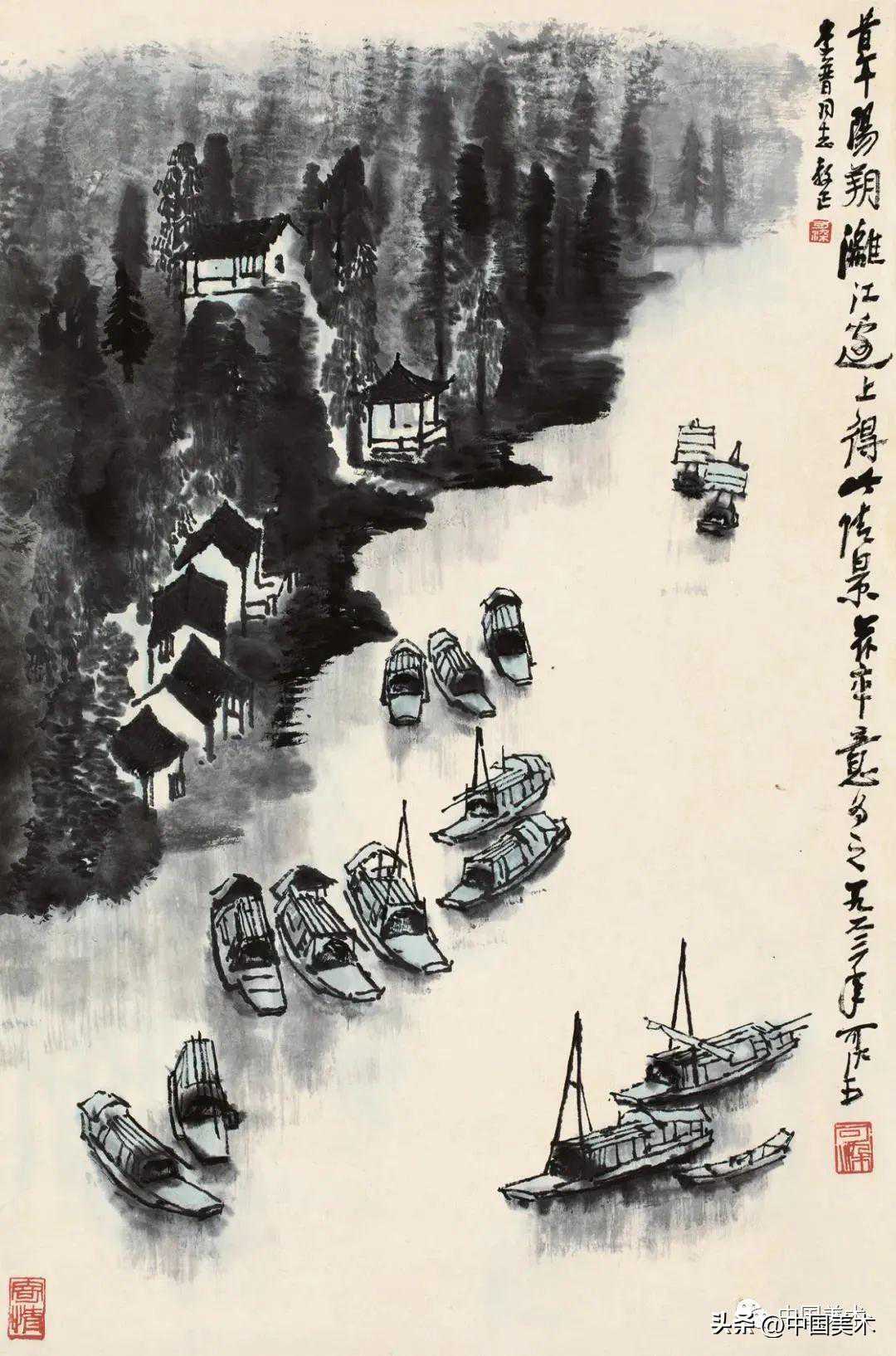 李可染清漓渔船图