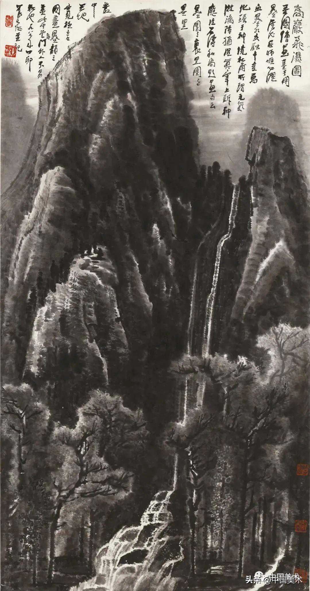 李可染高岩飞瀑图水墨纸本1987年