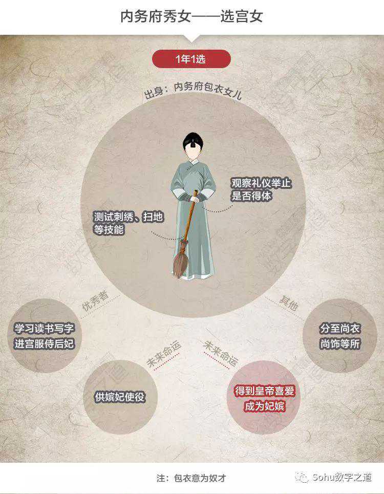 清代不存在麻雀变凤凰。除妃嫔外,挑选宫女对出身血统也有要求,因为宫女们一旦得到皇上宠幸,也是可能一跃成为后宫宠妃的。