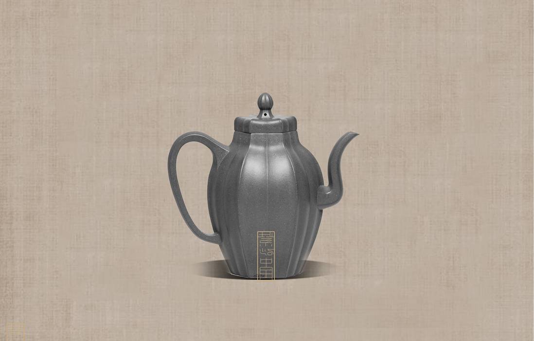 皴裂斑驳,伤痕累累的细节被刻画的惟妙惟肖,壶把作扭曲的枝节状,从壶腹延伸至壶盖,落脚在壶身,增强了视觉上的延伸感。