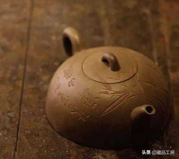壶身为白庵刻绘劲竹,书画并入,刀法老辣,飘逸洒脱,不拘一格。