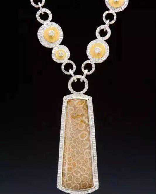珊瑚玉(FossilizedCoral),又称菊花玉,属于化石类宝石的一种,是由数亿年前的珊瑚石演变的。珊瑚石是珊瑚虫用其排泄物构成的房子,和砗磲等贝壳类一样主要成份是碳酸钙。珊瑚石经过漫长的演变,成为珊瑚化石。