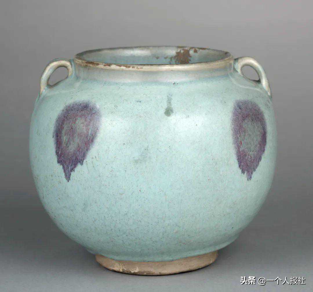 金钧窑蓝釉红斑双系罐