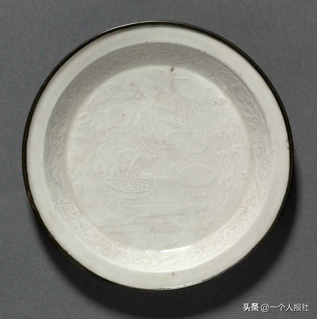 金定窑白釉印鸳鸯纹折沿盘