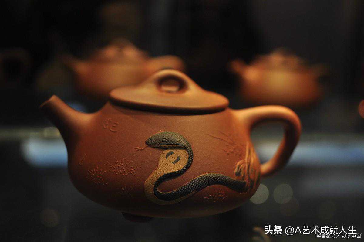 在紫砂陶制作高手层出不穷的同时,紫砂雕刻艺术家也不断涌现。艺名“石泉”的宜兴高级工艺师谭泉海,即是其中颇负盛名的一个。他所雕刻的“百寿瓶”在莱比锡国际博览会上获得金奖,“百帝鼻烟壶”获得国际精品大奖赛一等奖,50厘米直径的“松鹰群马”特大挂盘被故宫博物馆收藏。