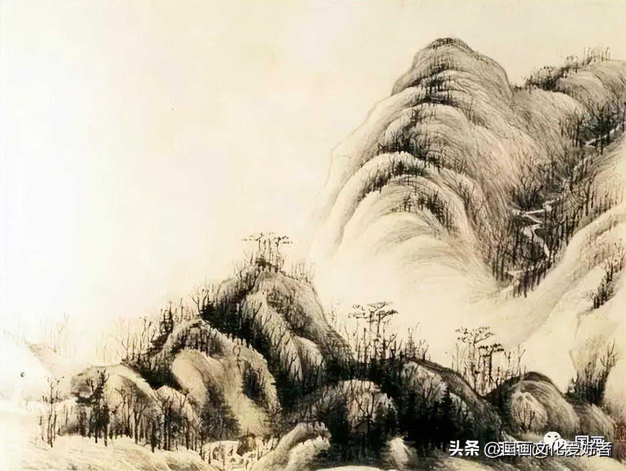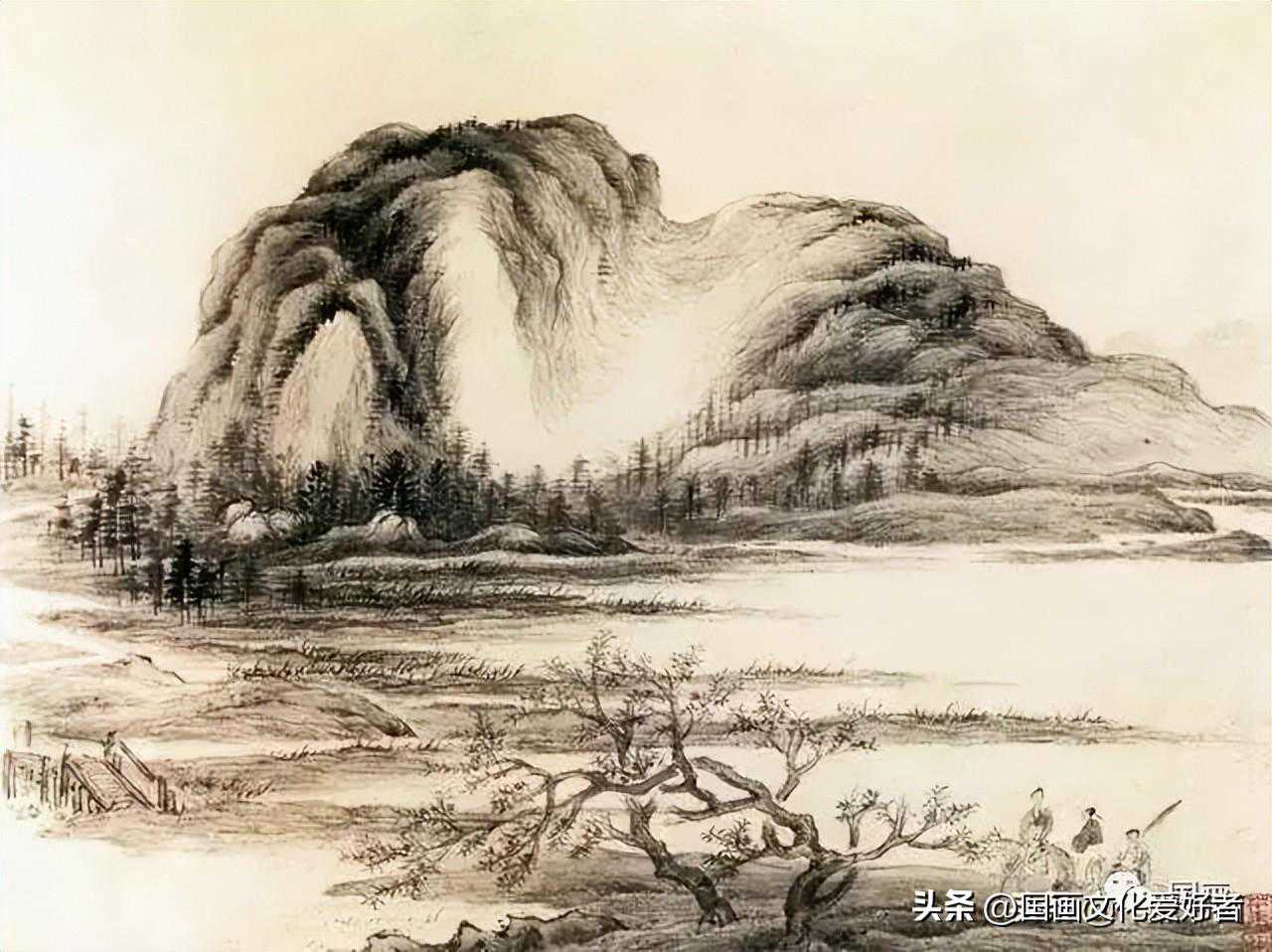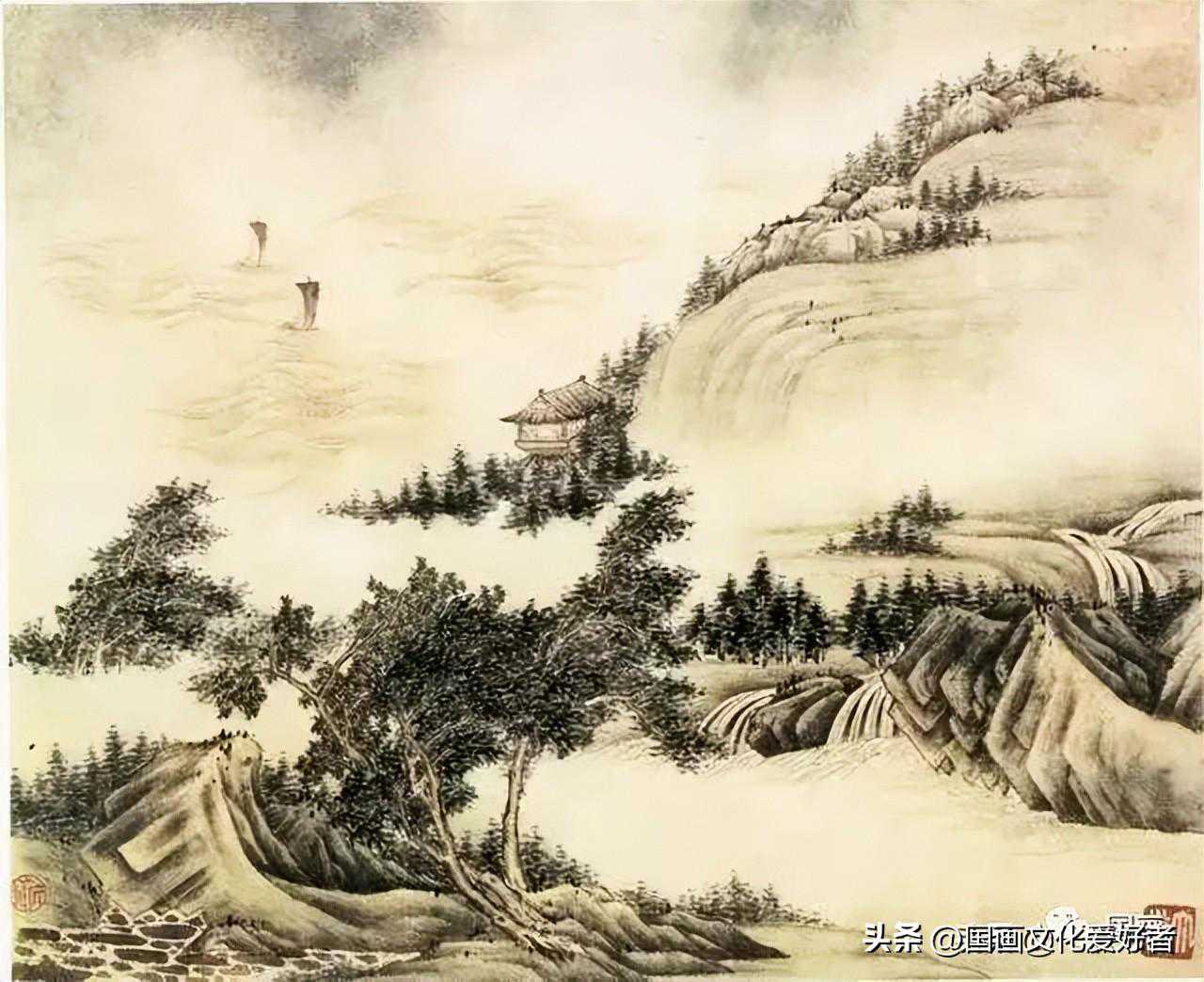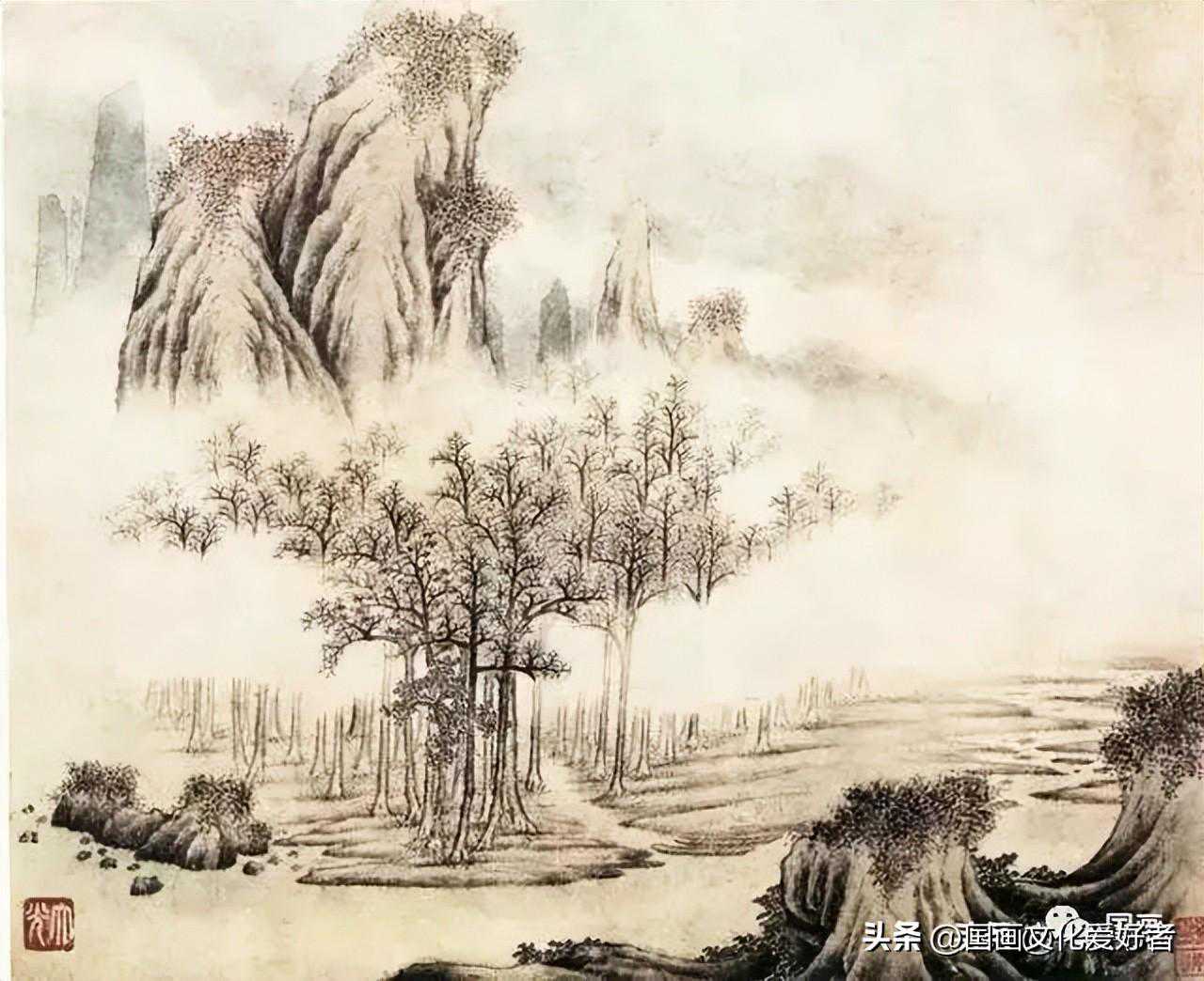 山水图髡残卷纸木水墨淡设色横76.2厘米纵37.5厘米(美)克利夫兰艺术博物馆藏