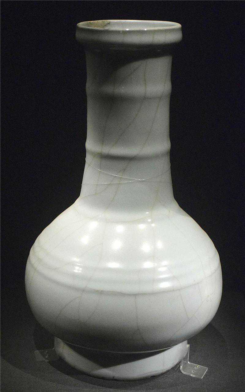 北宋官瓷胎质均为灰黑和紫褐色,釉层凝厚,青釉比较淡,以釉面开大裂纹片著称。传世品很少,形质与工艺与汝窑有共同处。