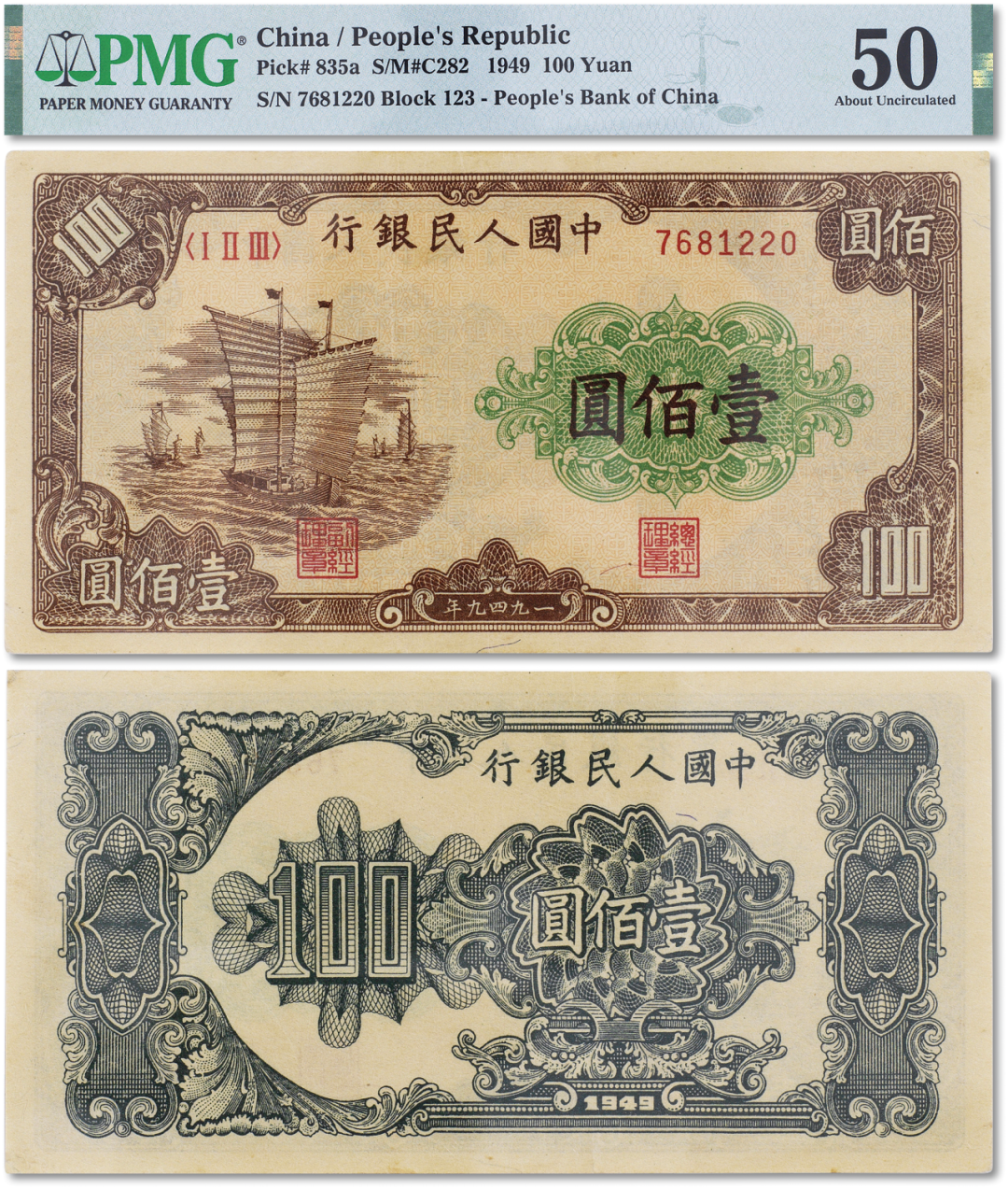 1949年中国人民银行第一版人民币壹佰圆“大帆船”一枚